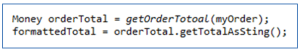In the above example the ‘getTotalAsString’ method should be modified to return ‘0’ instead of throwing an exception. This way we can write code like: