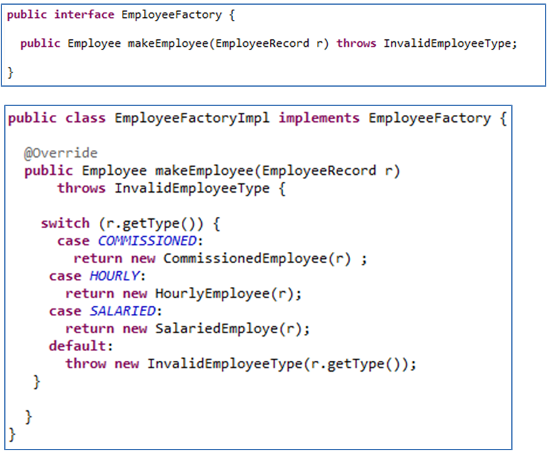 Note: even though we increased the number classes and added an interface ‘EmployeeFactory’ we have actually made the code much more extensible.